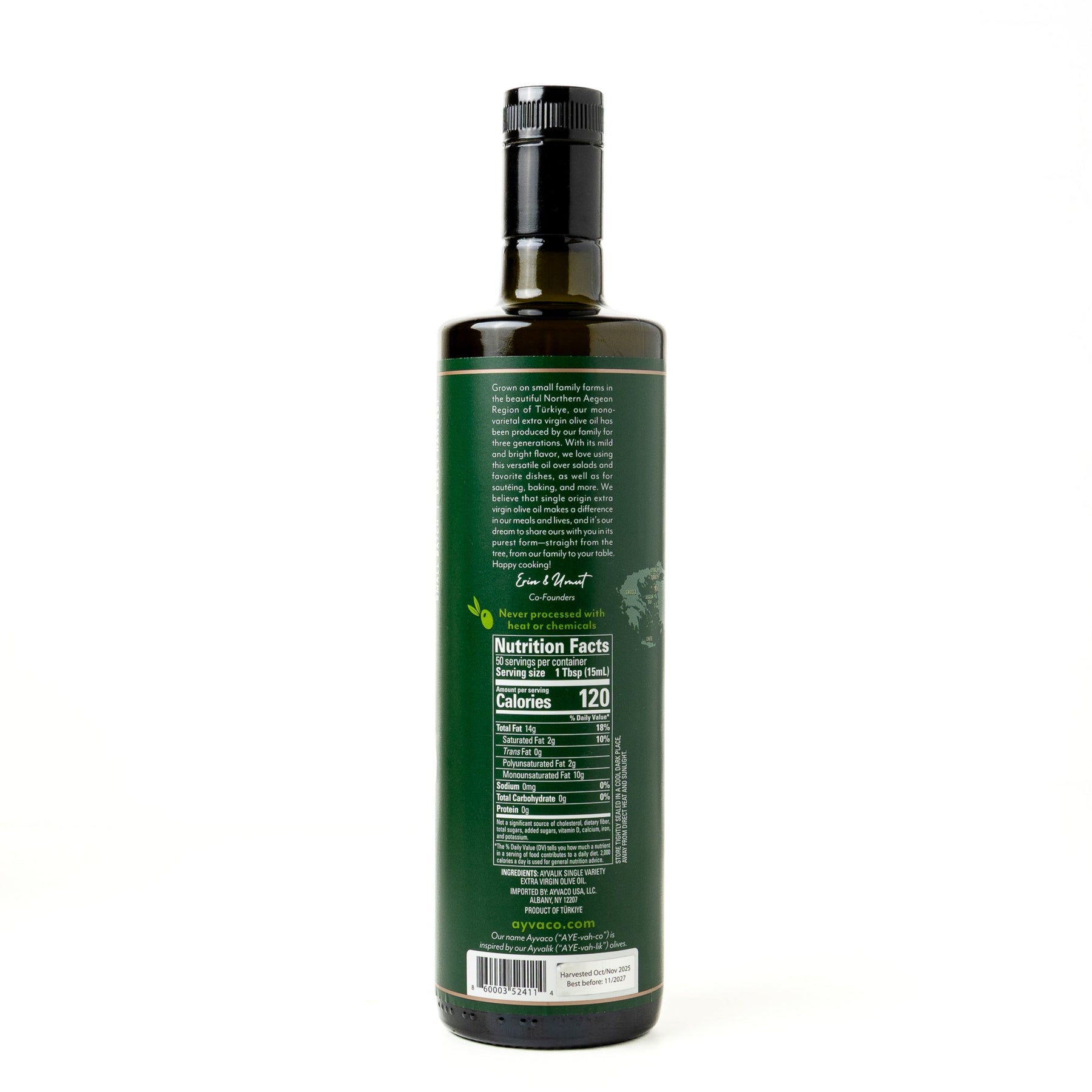 Ayvaco Extra Virgin Olive Oil is a uniquely mild and bright olive oil produced solely from the Ayvalik varietal native to the Aegean coast of Türkiye. We cut out the middle man so that the oil you receive is the same our family has enjoyed for generations - fresh each harvest season, never blended or refined, versatile for your everyday cooking, drizzling and dipping.